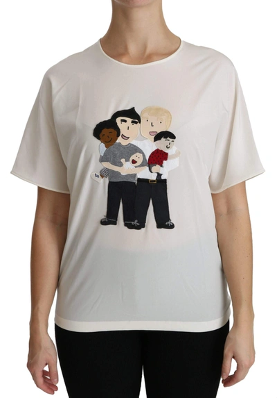 Dolce & Gabbana Gorgeous brand new with tags, 100% Authentic DOLCE & GABBANA t-shirt top. Model: T-shirt short sleeve crewneck blouseColor: White (off white) with multicolor Figure Family appliqueCollection: #dgfamilyLogo detailsMade in ItalyVery high quality and craftsmanshipMaterial: 91% Silk, 9% Elastane