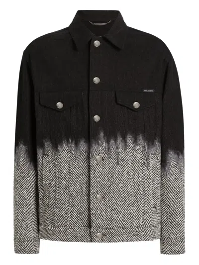 DOLCE & GABBANA Herringbone-pattern Denim Jacket In Black