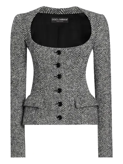 DOLCE & GABBANA Herringbone-pattern Jacket In Gray