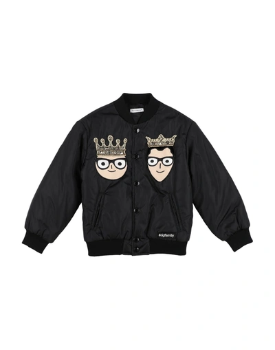 DOLCE & GABBANA Jackets. knitted, techno fabric, do not wash, dry cleanable, iron at 110degree c max, do not bleach, do not tumble dry, studs, embroidered detailing, solid color, single-breasted, snap buttons fastening, hooded collar, multipockets, long sleeves, internal padding. 100% Polyamide