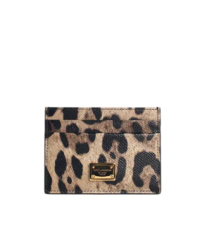 DOLCE & GABBANA Leopard-print Logo-plaque Cardholder In Animal Print