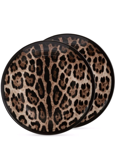 DOLCE & GABBANA Leopard-print Porcelain Dessert Plates (set Of 2) In Brown
