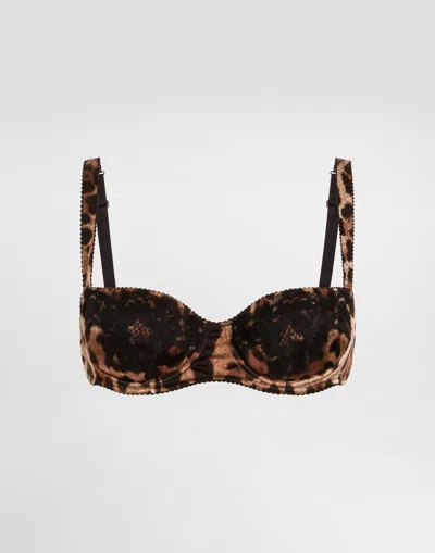DOLCE & GABBANA Leopard-print Satin Balconette Bra With Lace In Stampa Leo