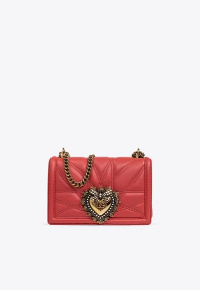 DOLCE & GABBANA Medium Devotion Quilted Shoulder Bag In Red