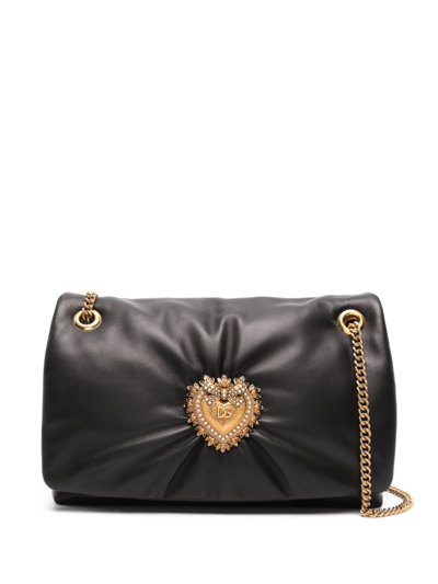 DOLCE & GABBANA Medium Devotion Soft Leather Shoulder Bag In Black