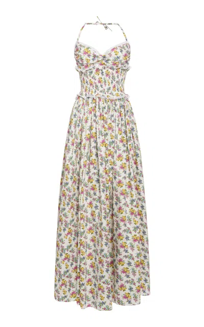 Each season; Domenico Dolce and Stefano Gabbana deliver a healthy dose of sex appeal inspired by the archives. You'll find prints that nod to the glamour and culture of Italy and figure-accentuating dresses and separates that celebrate the female form.Emblazoned in a renowned floral print; this retro-inspired dress has lace-lined cups and a shirred waistline; followed by a billowing maxi skirt. Wear along with some of the label’s latest accessories.