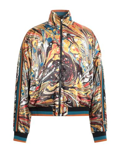 Step out in style with this absolutely stunning 100% Authentic Dolce & Gabbana bomber jacket. Featuring a colorful abstract print inspired by the beauty of marble patterns, this jacket comes with sleek stripes and ribbed trim for an elevated athletic look. The full zip closure keeps it practical while the logo details and metal hardware engraved with the Dolce & Gabbana mark add a touch of luxury. Perfect for adding a pop of color and sophistication to your wardrobe, this made-in-Italy piece ensures a great fit and comfort with its pure polyester material.. Color: Multicolor. Material: 100% Polyester. Country of origin: Italy. .