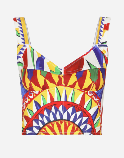 DOLCE & GABBANA Printed Silk-blend Bustier Top In Multi