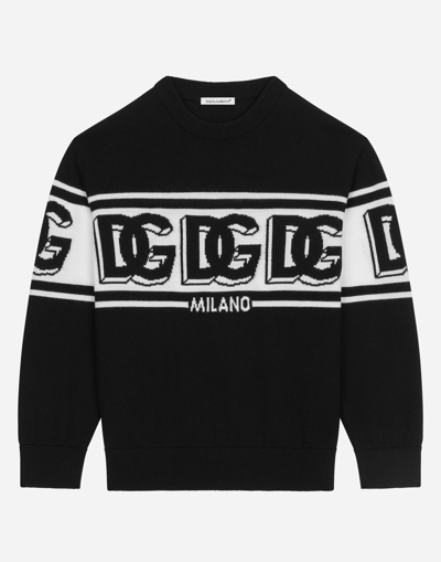 Plain-knit round-neck wool pullover with DG logo: Black Regular fit Round neck Long sleeves Stretch knit neck, hem and cuffs Inlaid DG logo The item in the size 6 years measures 46 cm from the shoulder seam Made in Italy