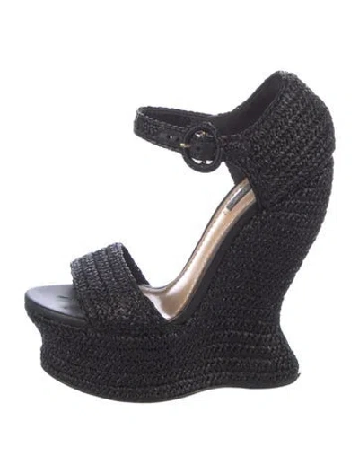 Dolce & Gabbana Raffia Espadrilles Black & Blue Platform Buckle Closure at Ankles Fit: Sandals by Dolce & Gabbana typically run small, consider taking a half size up. | Dolce & Gabbana Raffia Espadrilles in Black/Blue, Women's IT 37 | 7