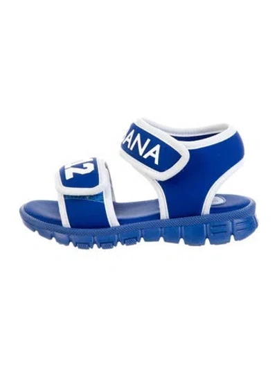 Toddlers' blue and white Dolce & Gabbana sandals with velcro closure. | Dolce & Gabbana Sandals in Blue/White, Girls' 8 | 2