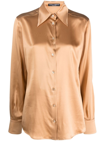 DOLCE & GABBANA Satin-finish Silk Shirt In Gold