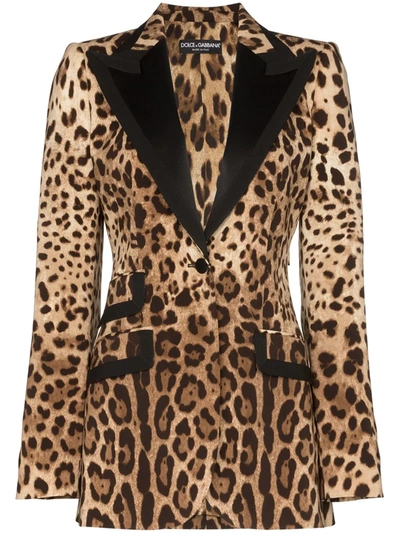 DOLCE & GABBANA Satin-trimmed Leopard-print Wool-blend Blazer In Leopard Print