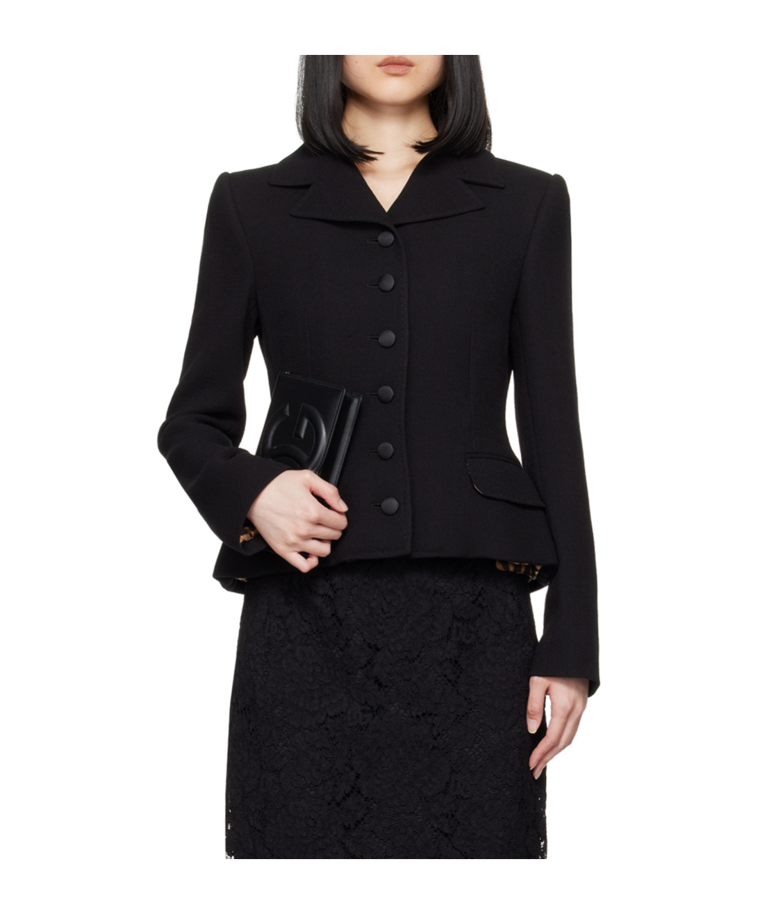 Dolce & Gabbana Black Virgin Wool Jacket. Black virgin wool, single-breasted, peak lapels, branded button fastening, reinforced shoulders, two front flap pockets, log sleeves, buttoned cuffs, hourglass-shaped, lined.