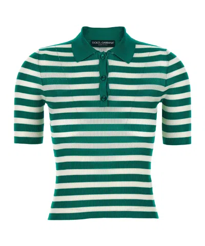 DOLCE & GABBANA Striped Ribbed Polo Shirt In Green