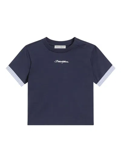 DOLCE & GABBANA Babies' Striped-edge T-shirt In Blue