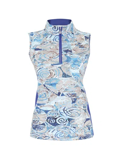 Fit, fabric and functionality. This tank top checks all the boxes.Features an artwork entitled 'Sea, Sand & Seashells' by Frank Tschakert Zipped stand-up collar. Sleeveless design. Printed front and back panels. Slightly curved hemline.Contrasting royal blue side panels. Lightweight stretch fabric. Unlined. 86% Polyamide, 14% Elastane.