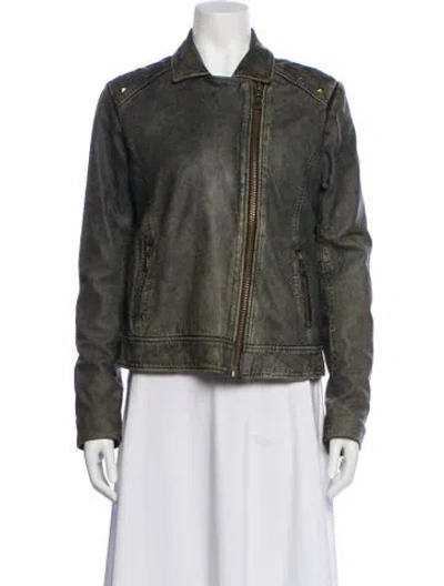 Doma Leather Jacket Green Studded Accents & Pointed Collar Zip Pockets & Zip Closure Fit: Jackets by Damir Doma typically fit true to size. | Doma Leather Jacket in Green, Women's XL