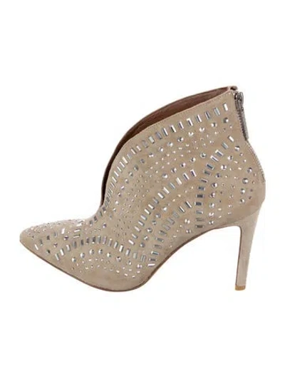 Donald Pliner Suede Ankle Boots Neutrals Patterned Pointed-Toes with Crystal Embellishments Exposed Zip Closure at Ankles Designer Fit: This designer typically runs true to size. | Donald Pliner Suede Patterned Boots in Neutrals, Women's US 8.5 | 8.5