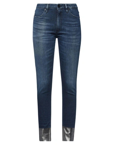model: iris, denim, laminated effect, medium wash, brand logo, mid rise, two-tone, slim-leg pants, tapered leg, button closing, multipockets, stretch , Color: Blue , Size: 29