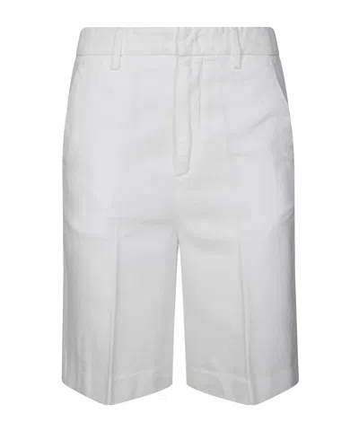white concealed front fastening two side inset pockets two rear welt pockets pressed crease