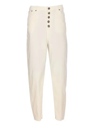 Vaqueros Bessie Gioie blancos Dondup, cierre con botones en la parte delantera, bolsillos, logotipo de parche en la parte trasera, corte holgado, efecto terciopelo