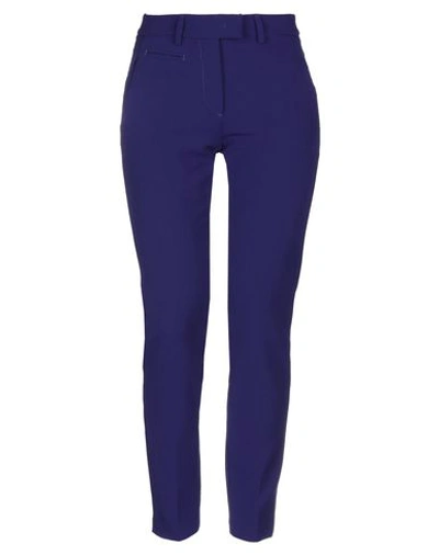 crepe, logo, basic solid color, mid rise, regular fit, tapered leg, hook-and-bar, zip, multipockets, stretch , Color: Blue , Size: 31