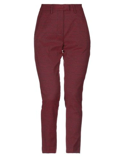 plain weave, jacquard, no appliqués, mid rise, slim fit, straight leg, hook-and-bar, zip, multipockets, two-tone, stretch , Color: Garnet , Size: 28