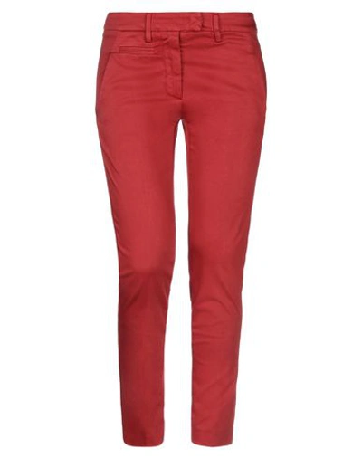 plain weave, logo, basic solid color, mid rise, regular fit, straight leg, hook-and-bar, zip, multipockets, stretch , Color: Brick red , Size: 34