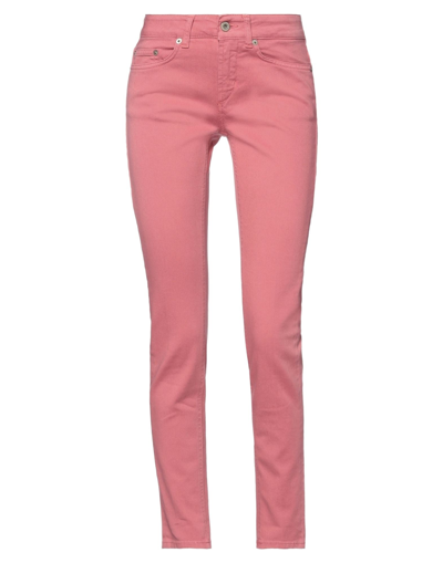 gabardine, brand logo, solid color, mid rise, tapered leg, slim-leg pants, five pockets, stretch, contains non-textile parts of animal origin, model: monroe, zipper closure, 1 button , Color: Coral , Size: 25