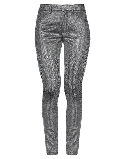 model: appetite, jersey, lamé, logo, two-tone, mid rise, slim fit, tapered leg, snap-buttons, zip, multipockets, stretch , Color: Silver , Size: 27