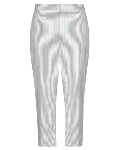 plain weave, stripes, strap detailing, logo, high waisted, regular fit, tapered leg, button, zip, multipockets, raw-cut hem , Color: White , Size: 10
