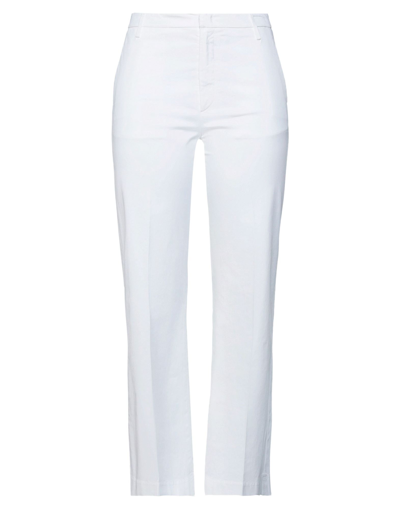 plain weave, brand logo, solid color, high waisted, straight leg, regular fit, hook-and-eye closure, zipper closure, multipockets, stretch , Color: White , Size: 6