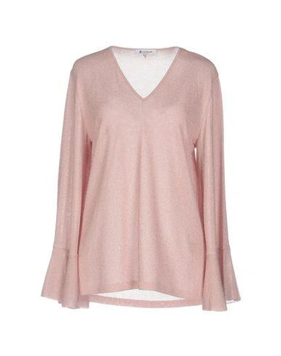 knitted, no appliqués, lamé, solid color, v-neckline, lightweight sweater, long sleeves, no pockets, small sized , Color: Pink , Size: S