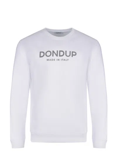 Dondup sweatshirt made of white cotton. Ribbed crew neck. Long sleeves. Contrasting logo lettering on the chest. Ribbed cuffs and hem. 100% cotton Made in Italy