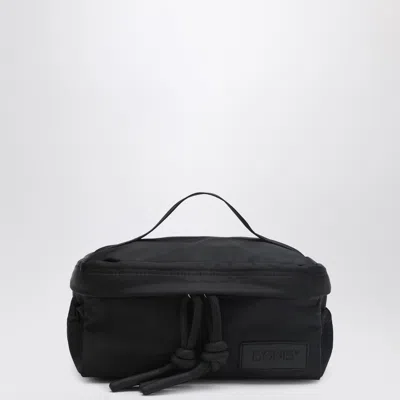 DONE! black nylon beauty case featuring coated zip closure, main compartment, two side drawstring pockets, internal mesh pocket, orange nylon lining for enhanced visibility, internal zip pocket, three toothbrush compartments, two side loops for attaching straps, and rear pocket with coated zip. Width 24,5 cm x Height 13 cm x Depth 13 cm 100% Recycled Nylon