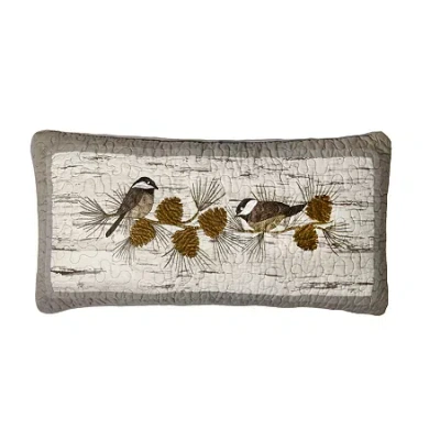 This lively cotton decorative pillow is primitive and rustic, featuring a heavily embroidered pine branch with pinecones and little chick-a-dees on a birch backdrop. A solid taupe border gives a completed touch. Coordinates with donna sharp's birch forest cotton quilted bedding collection. A hidden zipper helps for easy removal and cleaning. Machine wash cold, do not bleach, tumble dry low. 100% cotton, dimensions 11" x 22". Features: Removable CoverShape: RectanglePillow Size: 11 X 22 InBack Fabric: WovenFront Fabric: QuiltedFiber Content: 100% CottonFilling Content: 70% Cotton, 30% PolyesterCare: Tumble Dry, Machine Washable CoverDecor Styles: Farmhouse, RusticMaterial: CottonCountry of Origin: Imported