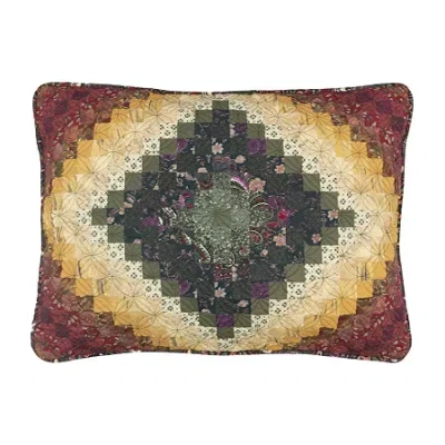 This quilted, ultra comfort collection, bedding ensemble is based on a classic postage stamp quilt pattern from donna sharp. A series of soft vibrant squares are arranged into waves of rich olive, forest green, warm gold, burgundy and ivory with pops of cinnamon. It has four borders; two in burgundy, one in a forest green, and one multi-color. The outer edge is scalloped. 100% polyester. All pieces sold separately.Number of Shams: 1Closure Type: ZipperQuilt Style: PrintedThread Count: 140Fill Weight: 6 1/2 oz. of FillPillow Size: StandardMeasurements: 26 Length/Inches, 20 Width/InchesFiber Content: 100% PolyesterFilling Content: 50% Polyester, 50% CottonCare: Tumble Dry, Machine WashDecor Styles: Farmhouse, TraditionalCountry of Origin: Imported