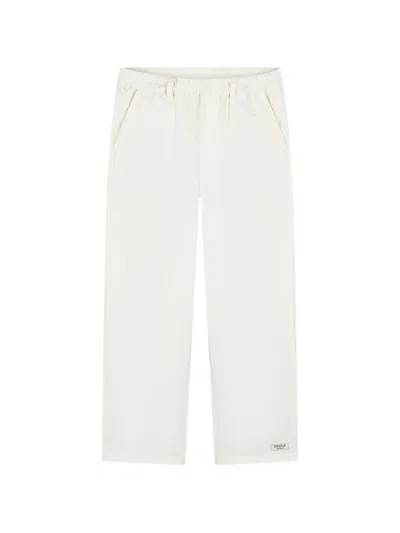 white elasticated waistband straight leg two rear pockets button detail logo patch