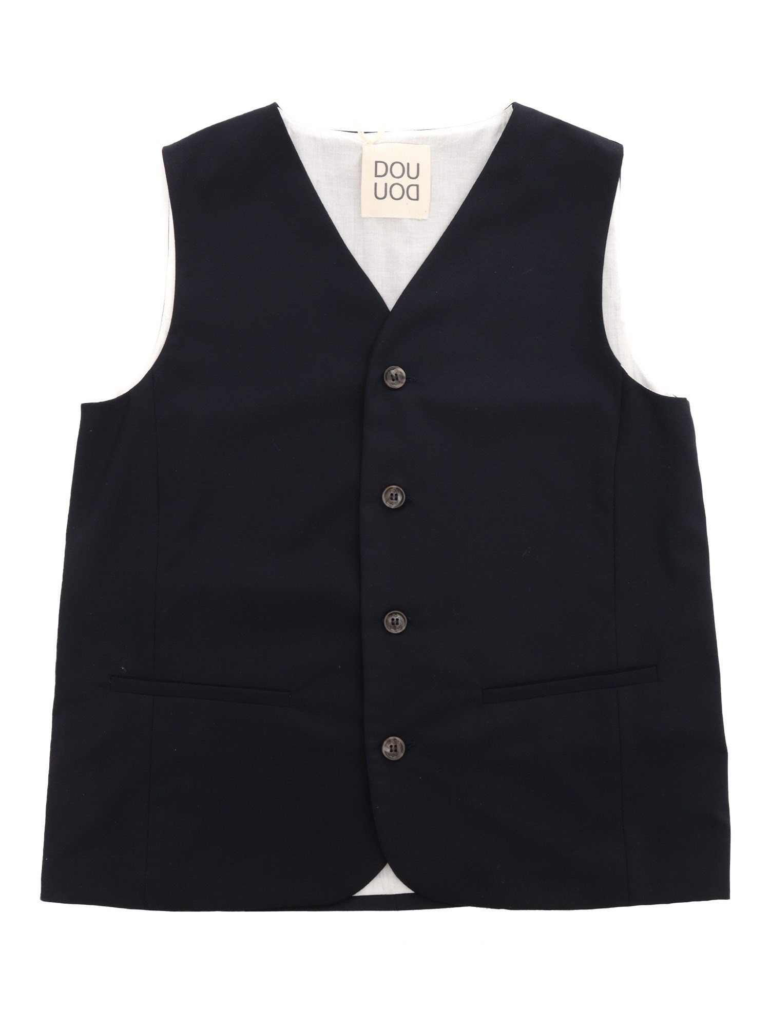 Gilet blu da bambino in misto poliestere ed elastan con interno a contrasto e bottoncini di chiusura frontali.