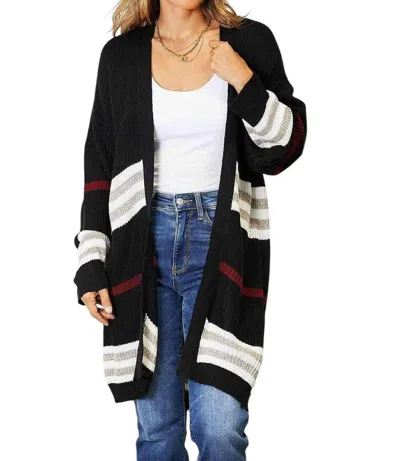 DOUBLE TAKE Cozy Striped Ribbed Drop Shoulder Sweater In Black