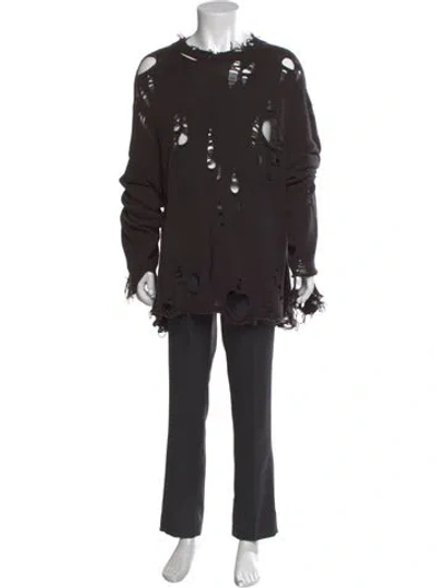 Doublet Pullover Grey Graphic Print Distressed Accents Long Sleeve with Crew Neck Fit: Sweaters by Doublet typically fit true to size. | Doublet Graphic Print Crew Neck Pullover in Grey, Men's L