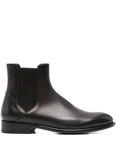 DOUCAL'S Elastic-panel Leather Boots In Brown