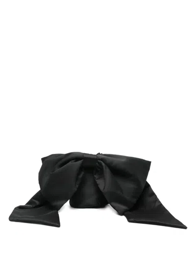 black large bow detail drawstring closure cylindrical shape satin
