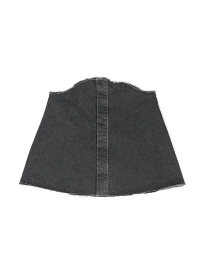 black cotton top cotton denim back application with logo contrast stitching raw cut hem frayed hem hidden front buttoning unlined design straight hem Composition: Cotton, 100%