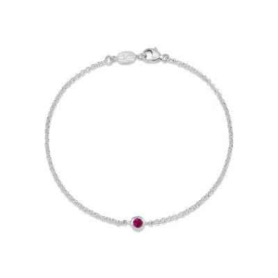 #SterlingSilver Perfect for day or night, this sterling silver Dewdrop chain bracelet features a single ruby encased in a dainty nugget setting. Fasten securely with our signature quatrefoil lobster catch and wear alone or stack with other bracelets for a layered look. Complete your outfit with a stack of our matching Twinkle rings. Stone size - 3mm. Size Guide (Total Length): Small - 7 Inches Medium - 7.25 Inches Large - 7.50 Inches #YellowGoldVermeil Perfect for day or night, this sterling silver Dewdrop chain bracelet features a single ruby encased in a dainty nugget setting, with an 18ct yellow gold vermeil finish. Fasten securely with our signature quatrefoil lobster catch and wear alone or stack with other bracelets for a layered look. Complete your outfit with a stack of our matching Twinkle rings. Stone size - 3mm. Size Guide (Total Length): Small - 7 Inches Medium - 7.25 Inches Large - 7.50 Inches