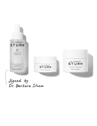 A Curated Trio Of Dr. Barbara Sturm’s Hydration Must-haves, Featuring A Signed Bottle Of Her Iconic Hyaluronic Serum - The ‘white T-shirt’ Of Dr. Sturm’s Skincare Line.