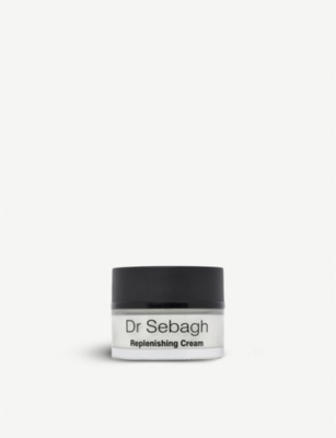 Designed to deliver immediate nourishment to sun-damaged, sensitive and prematurely aged skin, the Replenishing Cream by Dr Sebagh is here to help. Created as an intensive moisturising treatment, the formula is filled with a natural phytohormone complex (isoflavone and phytosterol) that works to restructure skin whilst replenishing moisture levels and aiding weakened skin that's experienced a depletion of younger hormones. Apply yours both am and pm to cleansed skin, after Vitamin C Powder Cream or your preferred serum.| 'Dr Sebagh Replenishing creamApplication: Apply morning and night to clean skin and follow if required with Pure Vitamin C Powder Cream or your chosen Dr Sebagh serum50mlFor hygiene reasons, this product cannot be exchanged or refunded, unless faulty.'