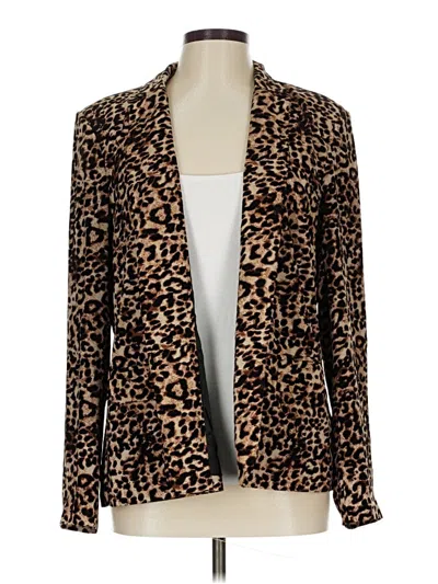 DR2 Blazer, Size: Large. Item Details: Brown, Animal Print Pattern, Women's Jackets & Outerwear, Polyester/Spandex