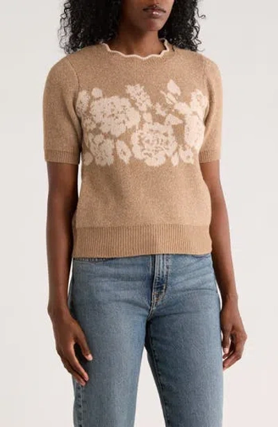 Abstract blooms lend romantic appeal to a jacquard sweater updated in a short-sleeve silhouette for season-spanning comfort. 21 1/2" length Crewneck Short sleeves 79% polyester, 17% nylon, 4% spandex Hand wash, dry flat Imported
